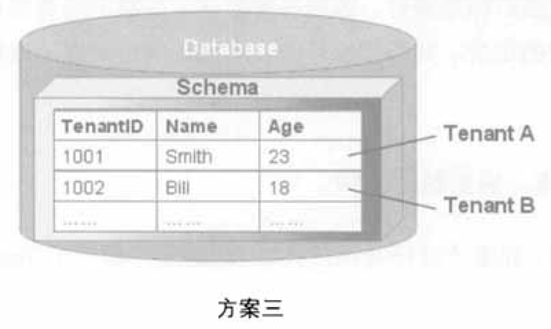 一个租户共享一个数据库、共享一个SCHEMA,通过在表中增加tenant_id字段来区分租户的数据。