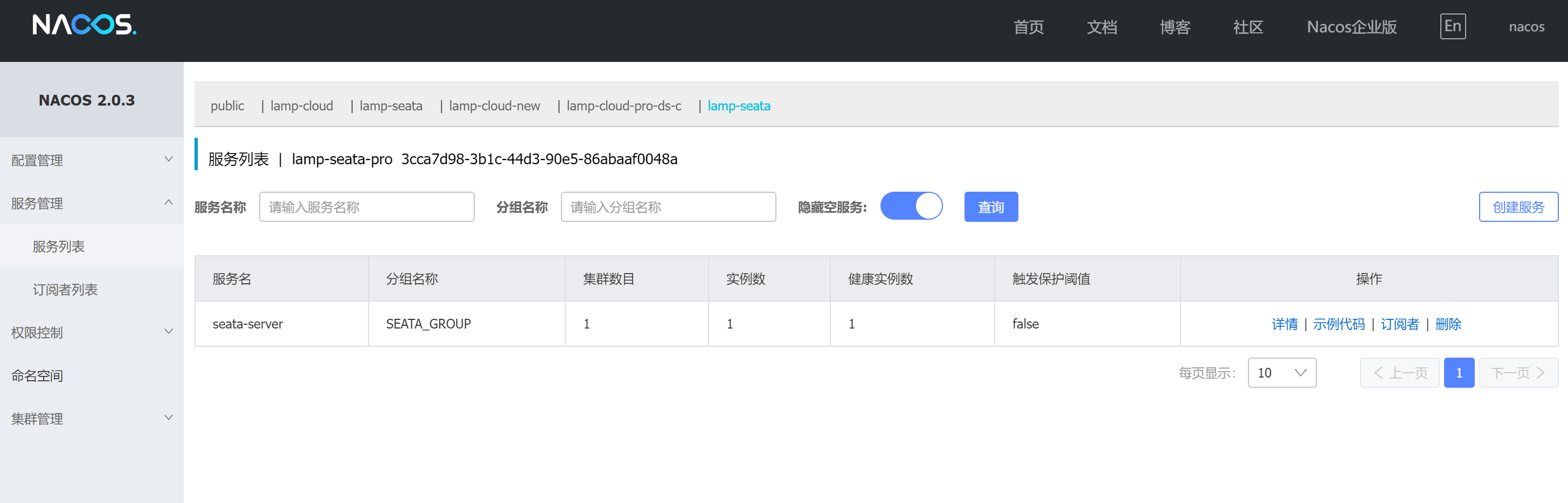 5b51e46a-4aeb-4d40-8398-8a9d33e2f0ad - 命名空间名: lamp-seata