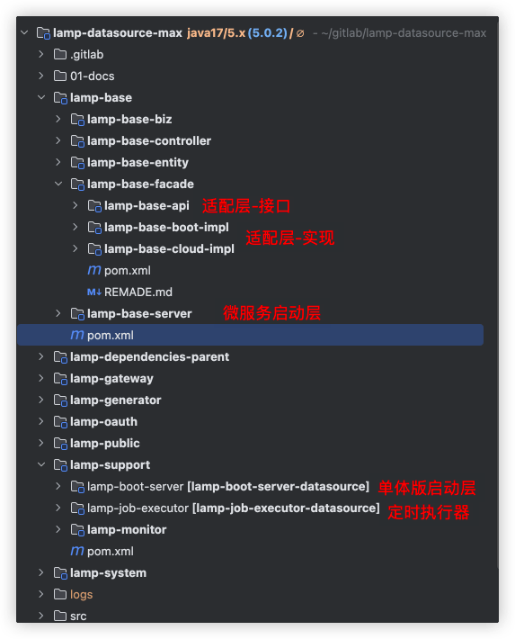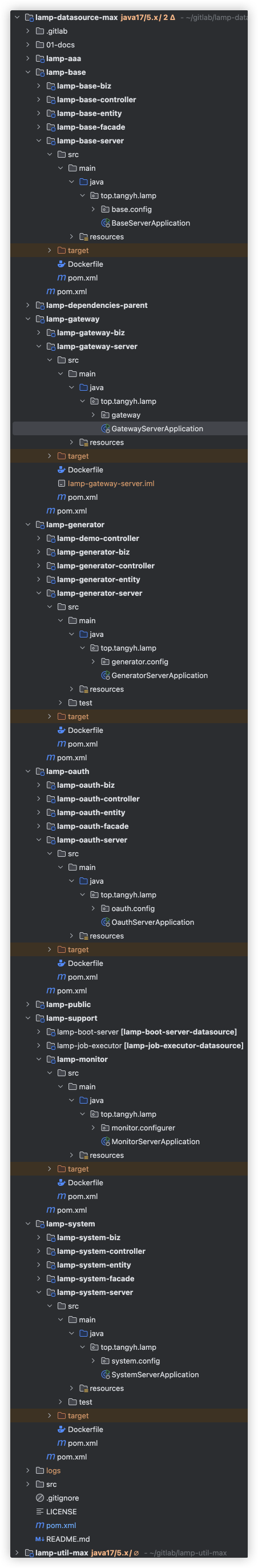 - 数据源模式:lamp-cloud-pro-datasouce-column 和 lamp-boot-pro-datasouce-column 合并为 lamp-datasouce-max