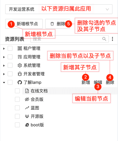 在此配置了资源后,用户还是无法访问该资源,需要在开发运营系统 - 应用授权管理,给需要此资源的企业授权后,登陆企业的租户管理员账号,在基础平台 - 角色授权管理将资源和角色进行绑定,并将角色分配给员工,员工才拥有刚新增的资源权限。