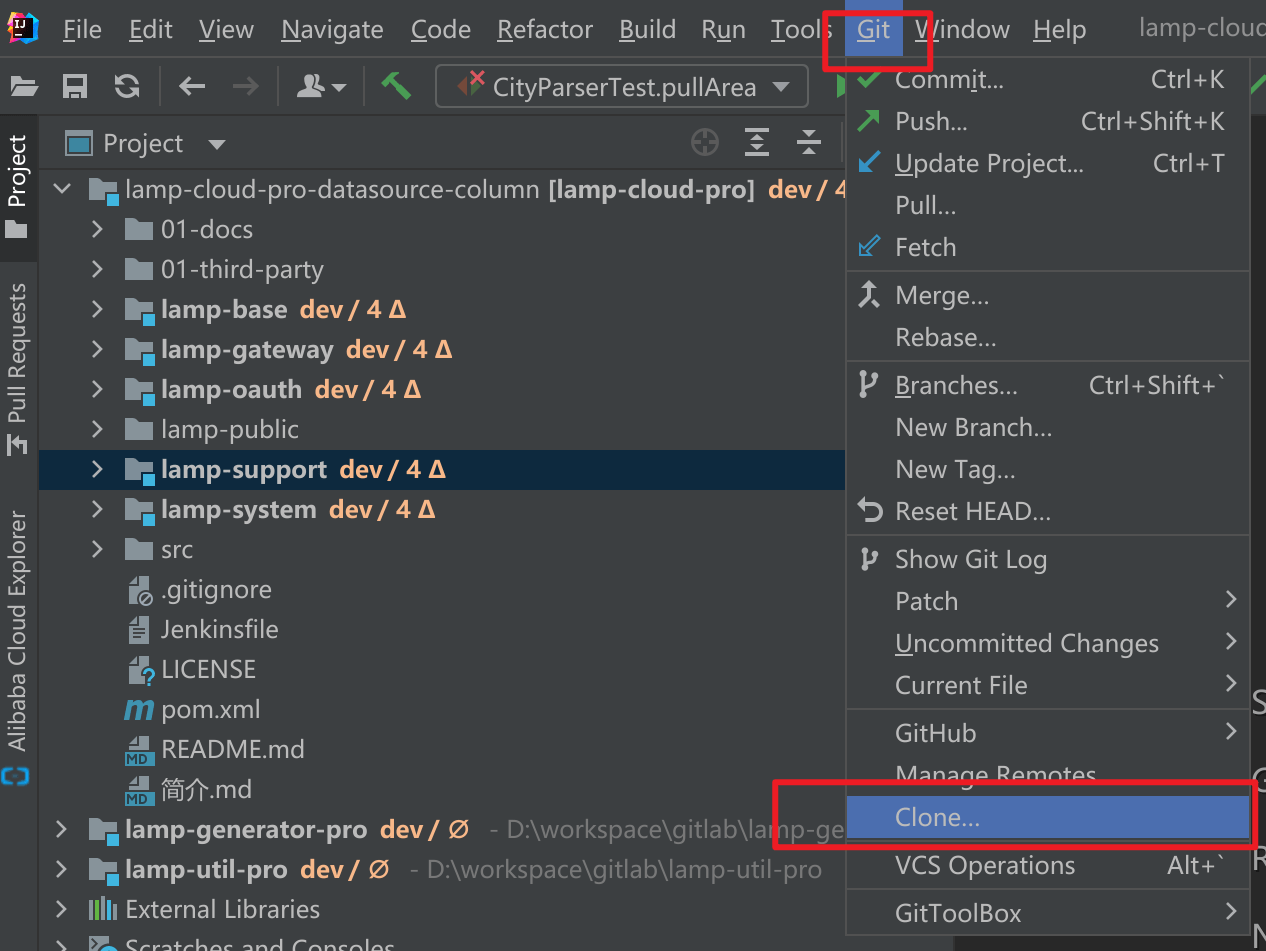 通过同样的操作 或 命令行 将 lamp-util-max 项目代码clone到本地.