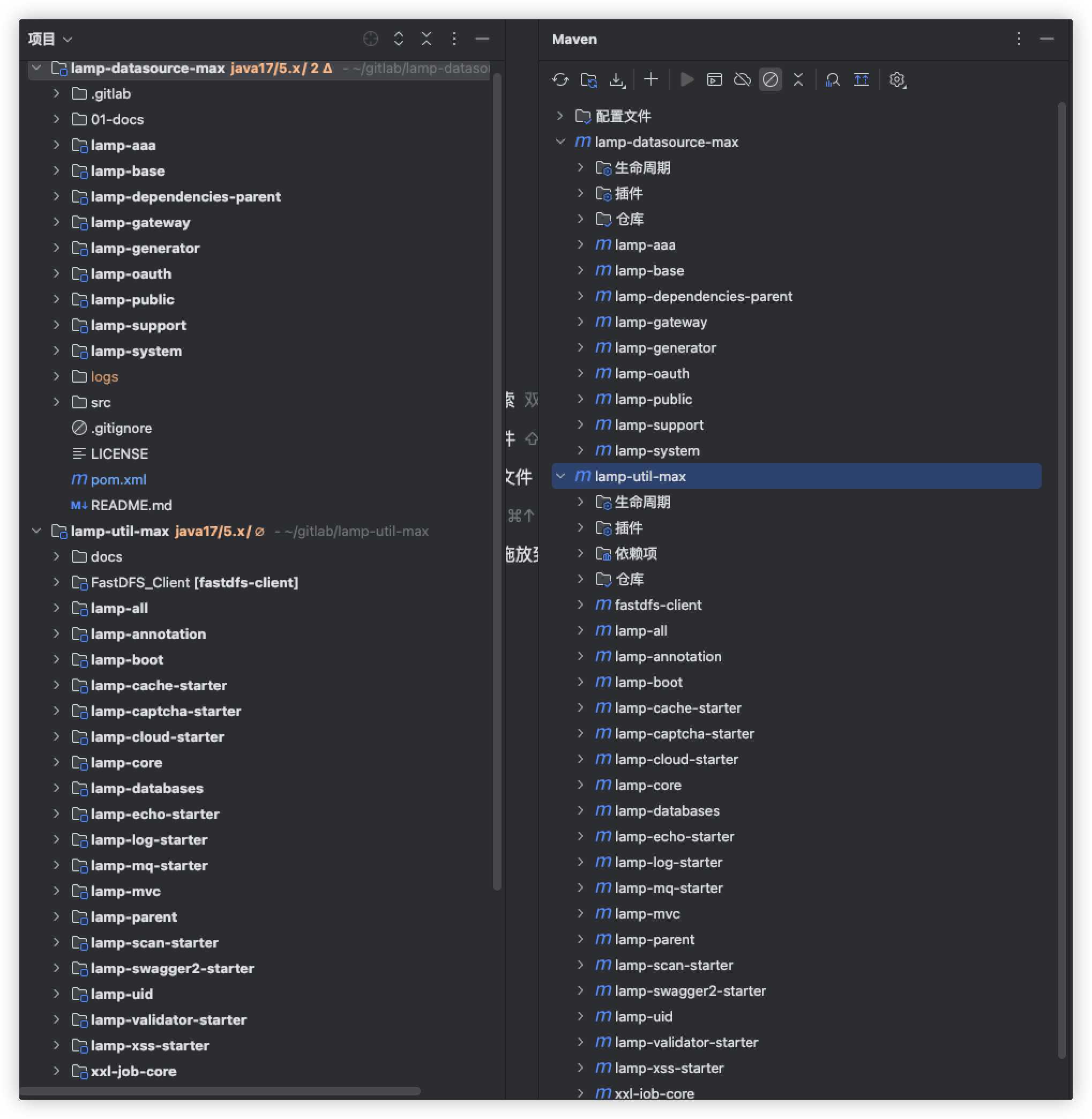 将 lamp-datasource-max 和 lamp-util-max 导入同一个IDEA空间